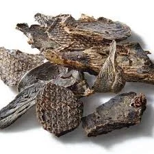 A dried, twisted piece of bark or wood with textured, scale-like surface.